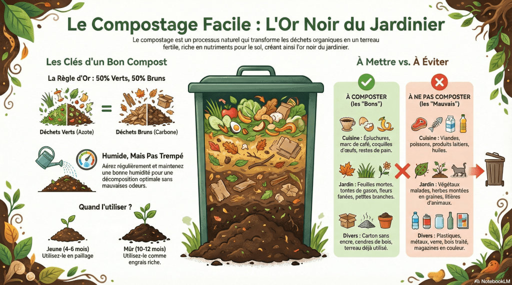 Le compostage est un processus naturel de transformation des déchets organiques en un terreau fertile et riche, communément appelé « l’or noir du jardinier ». Ce procédé vertueux permet de recycler une grande partie des déchets de cuisine et de jardin, réduisant ainsi le volume des poubelles tout en restituant au sol les nutriments essentiels.